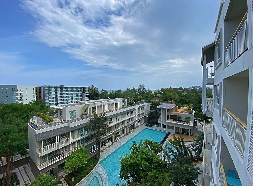 This 1 bedroom, 1 bathroom condo is located on the 6th floor at Autumn Hua Hin, offering 51 sqm of living space. The unit features an open plan living, dining and kitchen area, and is sold fully furnished. Being a corner unit, it provides panoramic views over Sea Pines Golf Course and towards the ocean.