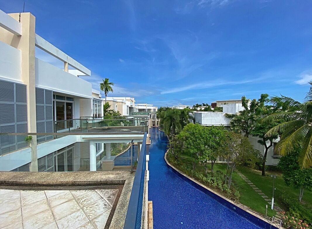 This 2-bedroom, 2-bathroom condo is located on the 3rd (top) floor in Building 5 at Blue Lagoon – Sheraton. The unit has 150 sqm of living space including a balcony and is offered unfurnished. Blue Lagoon is known for its extensive lagoon-style swimming pool, landscaped gardens, and direct connection to the Sheraton Hotel. Facilities include a communal pool, fitness, covered parking, and 24-hour security.