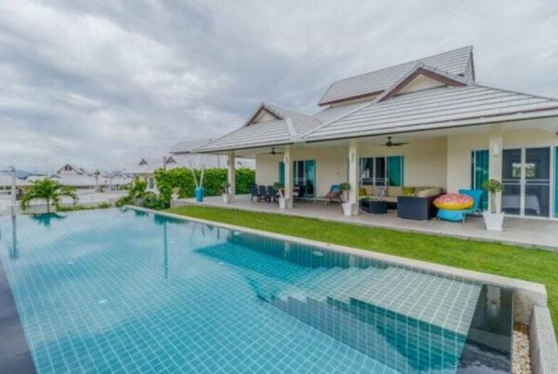 This modern Thai-style 3-bedroom pool villa is located in the popular Emerald Scenery development, just 10 minutes from Hua Hin town centre and the beach. Surrounded by mountain views and close to golf courses and local attractions, the villa offers peace, privacy, and convenience.